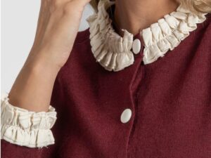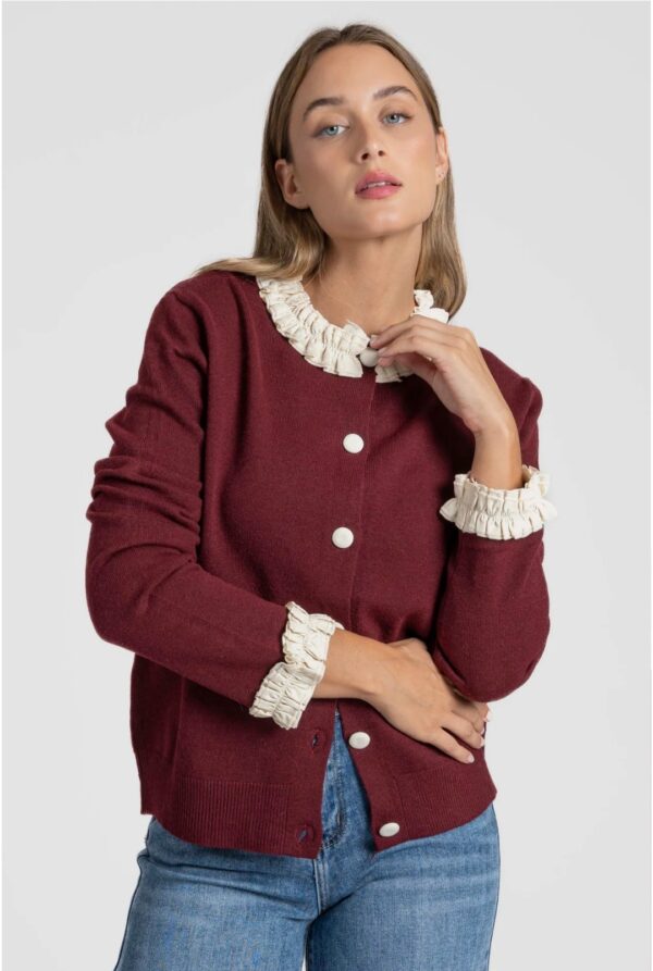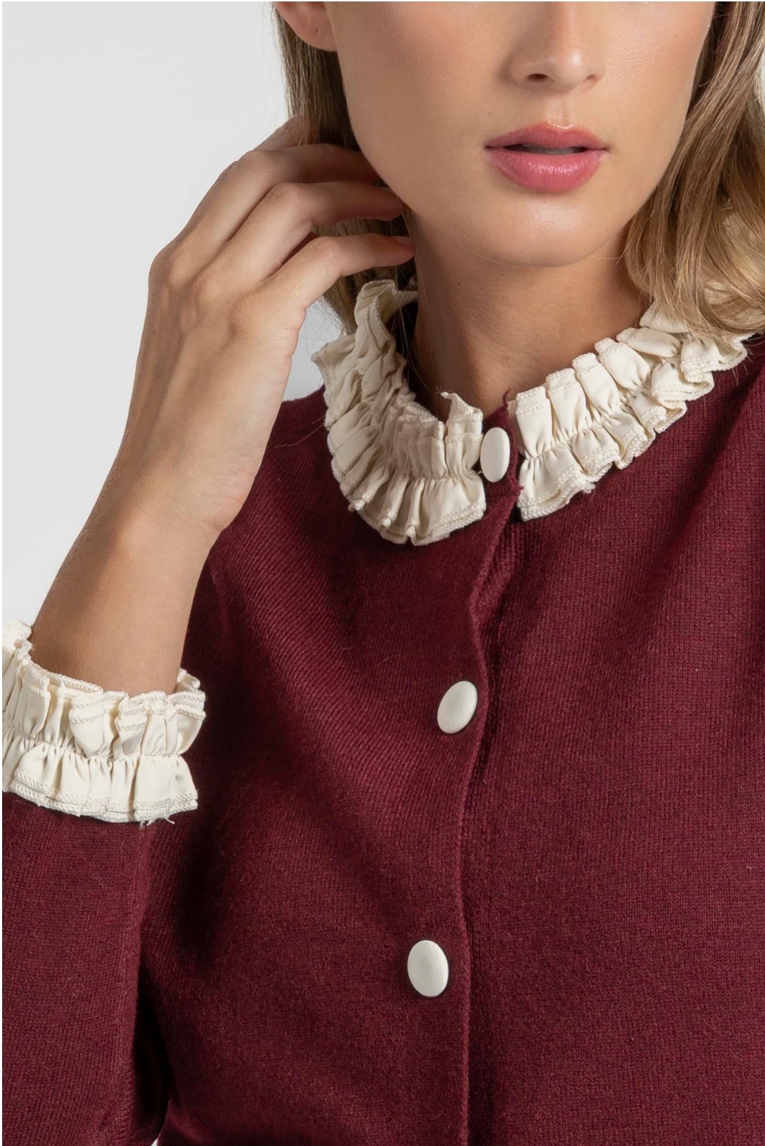 Tejido de punto. Cuello redondo. Cierre frontal con botones a contraste.